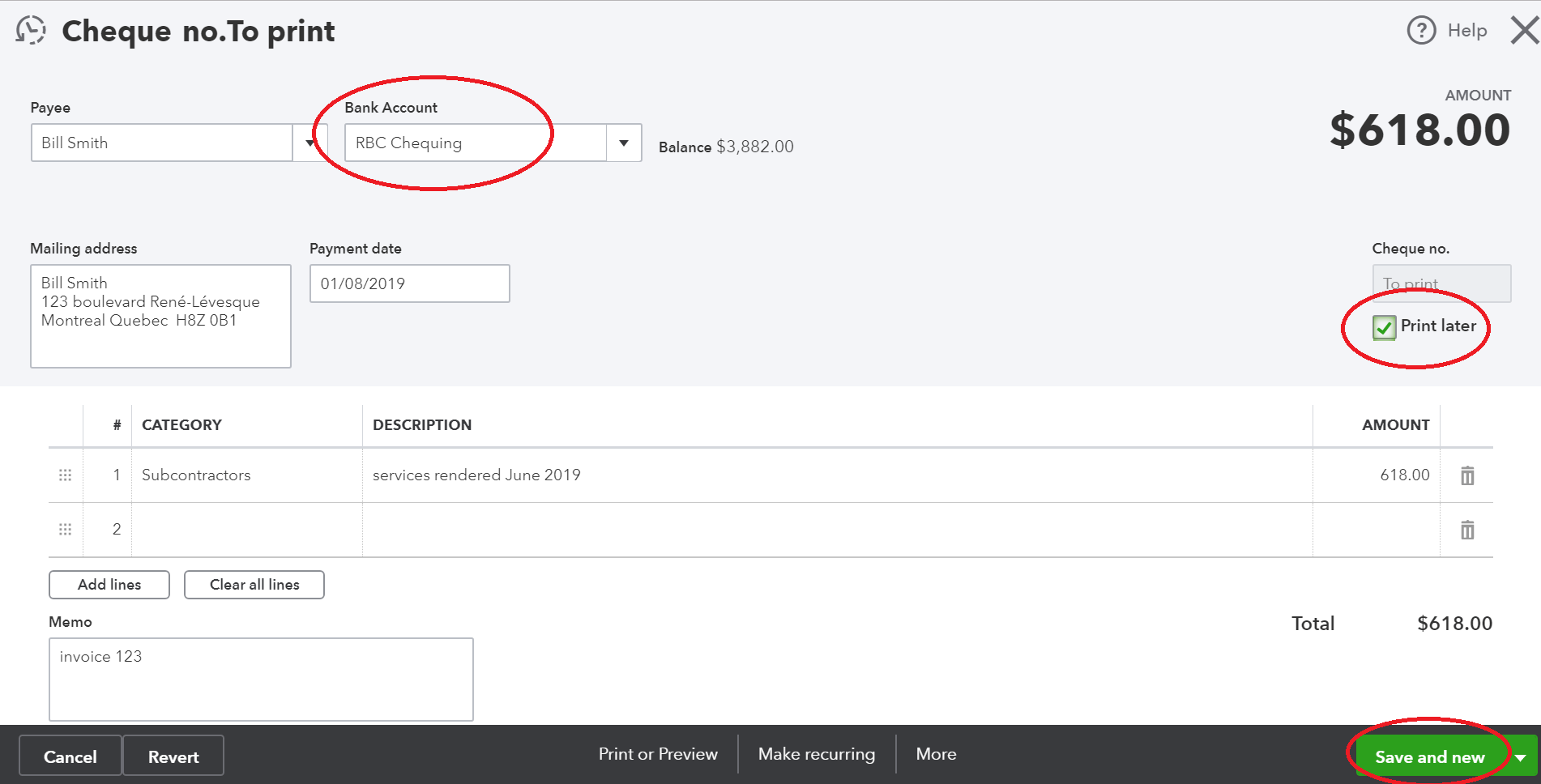 - Select the “Print Later” option under the check number on the right side.
